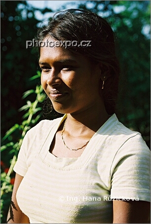 Dívka co nám cestou na Sigiriyi ve svém skromném vesnickém domě předváděla jak nakládat s kokosovým ořechem, aby z něj člověk získal naprosto vše. Srí Lanka.