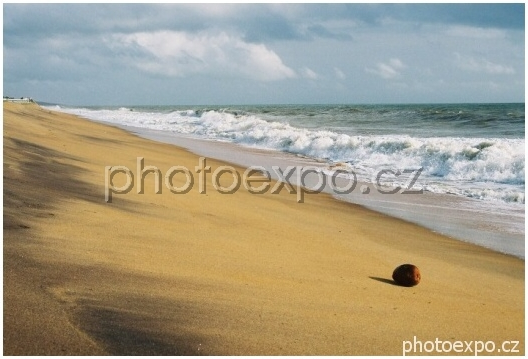 Zátiší s kokosovým ořechem na nádherné syrově přirozené pláži v Marawile.