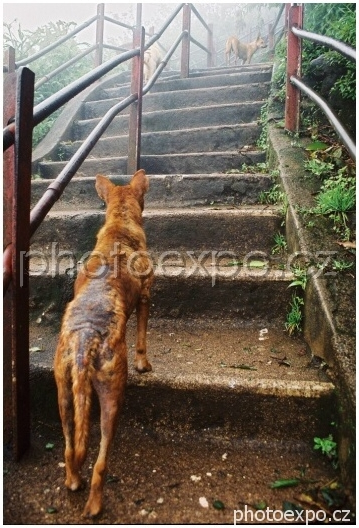 Schodů na Adam´s Peak (2 224 m), horu, kde Adam údajně poprvé stoupl na zem po vyhnání z ráje, je celkem 4 800. Tam a zpátky je to tedy 9 600 schodů. Přesto se mě a mému průvodci rozhodli dělat společnost tři psi. Jeden měl, chudák, poněkud olysalý hřbet.