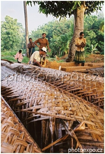 Jednou z našich prvních zastávek na Srí Lance je domácí palírna cihel. Cihly jsou překryté rohožemi z palmových listů a pomalu vysoušeny slunečními paprsky.