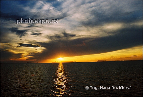 Západ slunce cestou z pevniny na ostrov Ko Samui. Thajsko.