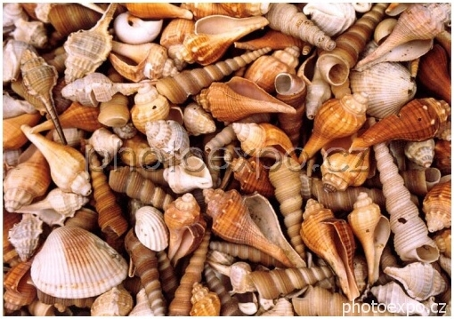 Detail nepřeberného množství mušliček a lastur nabízených na trhu na ostrově Ko Samui k prodeji turistům.