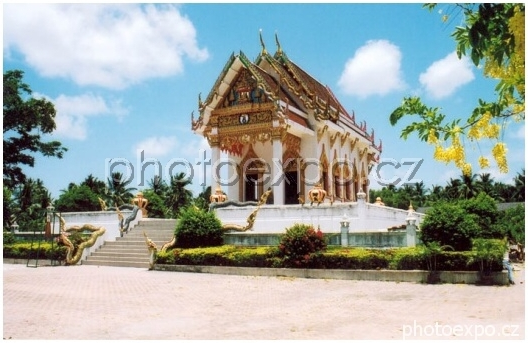Chrám Khunaram na ostrově Ko Samui postavený v typickém thajském stylu. Zlaté "špice" na střeše tzv. chofa zpodobňují hlavu posvátného ptáka. Pro chrámovou architekturu je zde vlastní odlehčenost a fascinující barevnost.