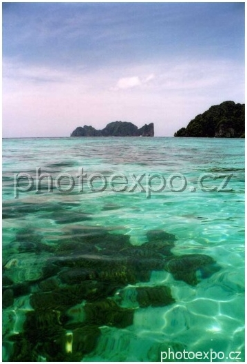 Voda Andamanského moře u thajských ostrovů je neuvěřitelně průzračná. Údajně je vidět až do hloubky 30 m. Zde obeplouváme známý ostrov Phi Phi.