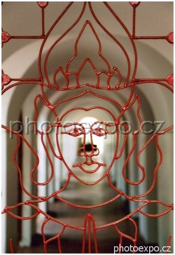Dveřní mříže vytvarované do podoby Buddhy v chodbách chrámového komplexu Wat Rajanada v budově Loh Prasat, Bangkok. S různými ztvárněními Buddhy se v Thajsku setkáváte na každém kroku.