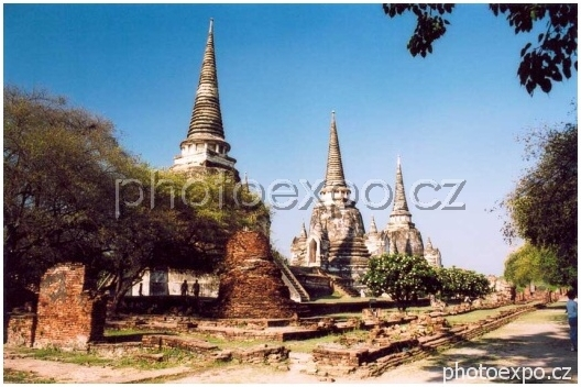 Ayutthaya, Wat Phra Sri Sanphet, nejvelkolepější velmi zachovalý ayutthayský chrám, pojmenovaný po jedné z největších kovových soch stojícího Buddhy, která měřila 16 m a byla pokrytá vrstvou zlata o váze 173 kg.