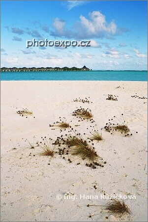 Sun Island je nejkrásnější maledivský ostrov-resort, na kterém jsme byli. Je údajně celý umělý, vytvořený k obrazu turistického ráje. Dominuje mu majestátní komplex velmi lusuxních vodních bungalovů, zde v pozadí. Maledivy