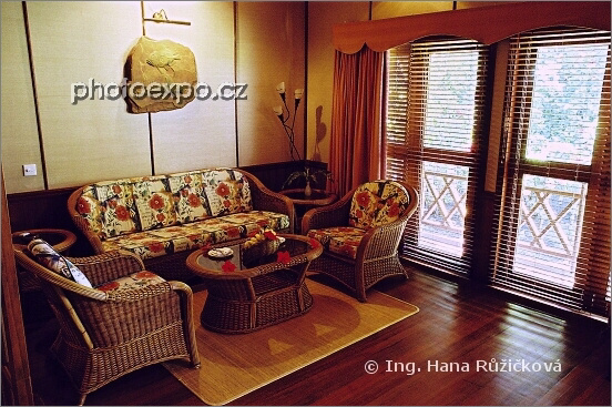 Nádherný interiér bungalovu na ostrově Baros. Maledivy