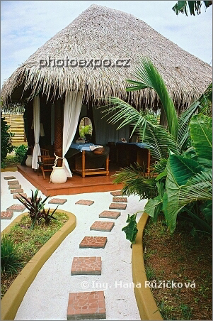 Moderní architektura dodržující přírodní ráz maledivských ostrovů. A co se skrývá pod přístřešekem? Masážní lehátka a další vybavení k svalovému uspokojení klientů resortu Paradise Island. Jasně, že jsem se nechala opečovat :=) Maledivy