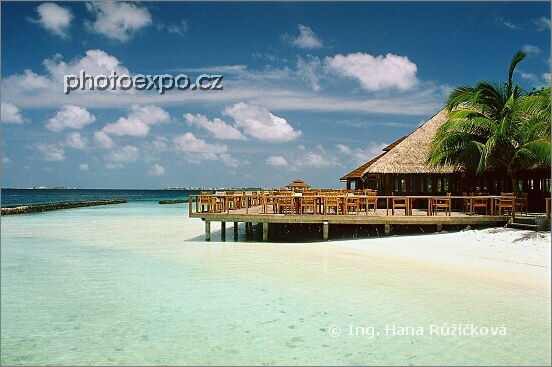 Plážová restaurace pro ubytované na ostrově Kurumba. Maledivy