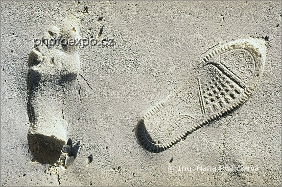 Copak se to přede mnou procházelo po pláži ostrova Holiday Island? Ani obutý ani bosý.... Náhodně objevená zajímavá kombinace stop v písku mne nemohla nezaujmout... Maledivy