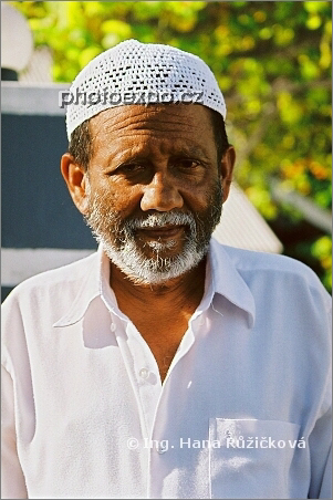 Obyvatelstvo Malediv je především muslimské víry a proto zde není tak úplně jednoduché fotit lidi. Od tohoto muže v typickém oděvu věřícího, jsem svolení dostala. Male, Maledivy.