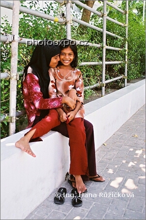 Ze dvou sester vyzařovala dobrá nálada a vzájemná láska. Pozitivní záběr, který mám ráda. Male, Maledivy.