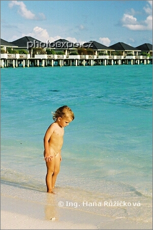 Nádherný Sun Island, luxusní vodní bungalovy - měla jsem tu čest v jednom strávit noc - a malý průzkumník. Maledivy