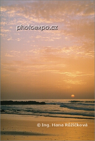 Pastelový západ slunce nad Atlantikem. Pláž Le Gzira, Maroko.