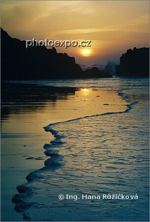 Západ slunce nad Atlantikem. Le Gzira, Maroko.