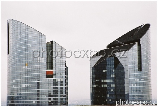 Výškový detail ultramoderních budov v kupodivu padesát let staré čtvrti - kancelářském městě La Défense.