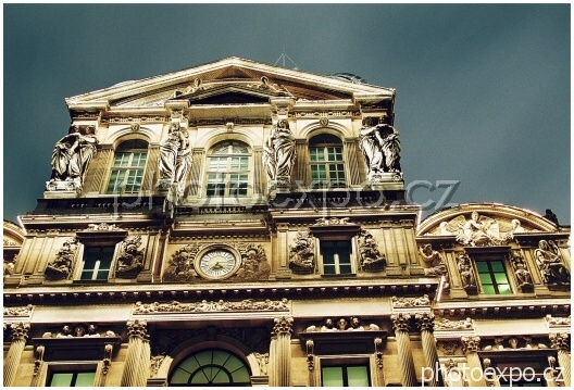 Detail historické budovy muzejního komplexu Louvre, nejrozsáhlejšího muzea na světě.