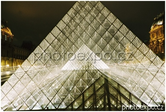 Hrátky s pyramidou v Louvre. Při focení fotoaparátem umístěným na stativu jsem otáčela zoomem a tím si pyramidu přiblížila.