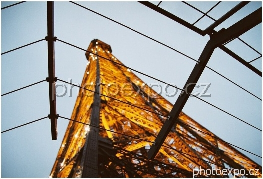 Eiffelovka za mřížemi. Natažené dráty mají pravděpodobně chránit případné návštěvníky se sebevražednými sklony od skoku či slézání z věže.