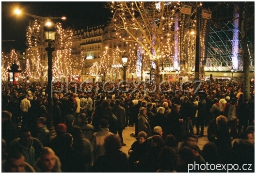 Davy čekající na půlnoční silvestrovské oslavy na Champs-Elysées. Za pár minut je to tady. Atmosféra očekávání je všude kolem nás. Všichni se chovají slušně, žádné výtržnosti, jen těšení se na oslavy příchodu roku 2005.