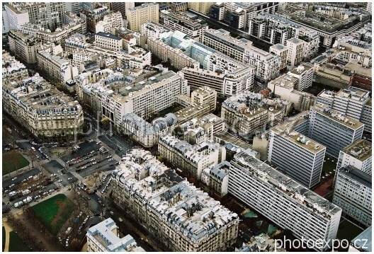 To není focené z letadla ale z Eiffelovky. Teleobjektivem detail pařížské architektury.