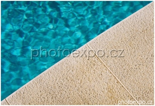 Hra barev a struktur bazénu hotelového komplexu Baia Di Nora v Pule.