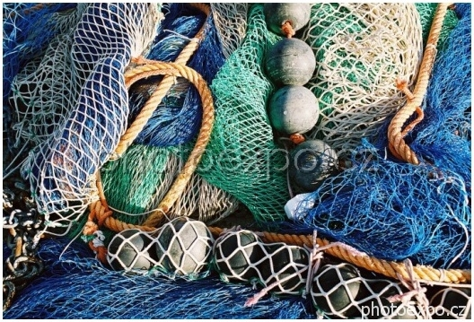 Detail rybářských sítí v přístavu Calasetta.