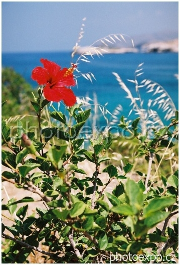 Květ ibišku na pobřeží Krétského moře v našem letovisku Bali.