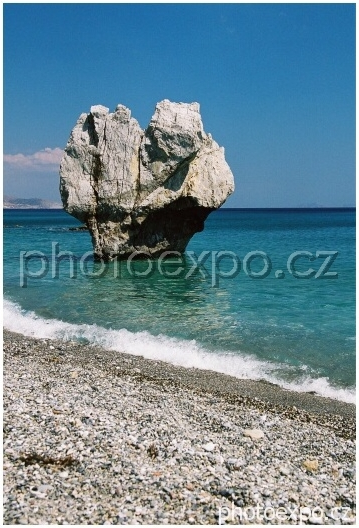 Strážce Palmové pláže. Pláže z palmami na Krétě moc nenajdete. Palmová pláž u ústí studené říčky Megalou Potamos je výjimkou potvrzující pravidlo. A tento kamenný Strážce zdejší nádheru na břehu Libyjského moře hlídá.