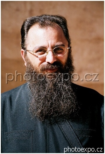 Mnich z významného krétského kláštera Moni Arkadiou. Po zkušenostech s neochotou místních lidí pózovat pro fotografie mne tento sympatický brýlatý vousáč překvapil svojí vstřícností.