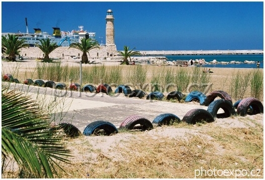 Rethymno. Parkoviště lemované barevnými pneumatikami, Benátský maják a romantický přístav. Rethymno, přístavní město a jedno ze čtyř nejvýznamnějších měst Kréty mi svými krásami k srdci přirostlo nejvíce.