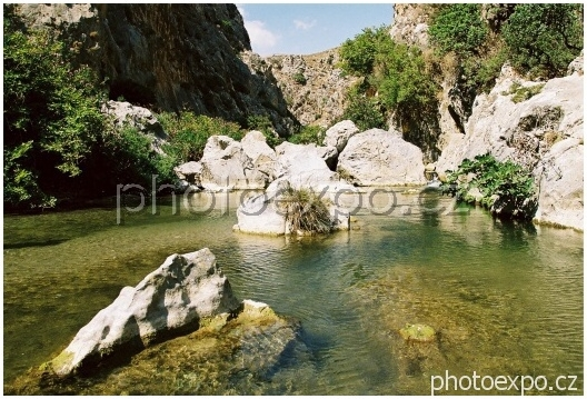 Průzračná lagunka, kterou vytváří říčka Megalou Potamos ústící na Palmové pláži do Libyjského moře. Až sem jsem se dostala od šlapadla po svých (viz foto 49).