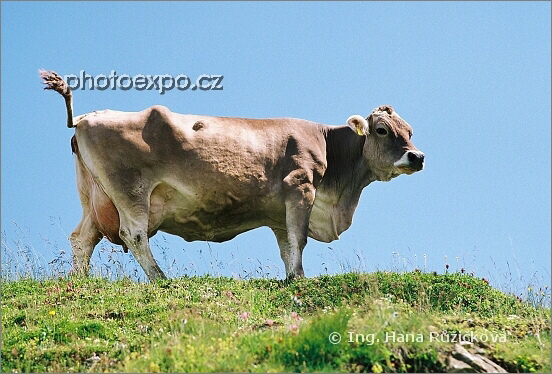 Kráva, strážkyně jezera Montespluga, Itálie.