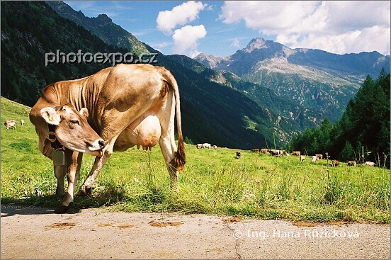 Proslulé alpské pastviny umocňují romantiku švýcarských horských velikánů. Čím výše se krávy pasou, tím kvalitnější je jejich mléko i maso. Proto se v létě vypravují slavnostní průvody, které vyprovázejí krávy s pasáky do vyšších horských poloh na ty nejkvalitnější pastviny. Tato kráva byla rozená modelka, věděla přesně, jak se nastavit a co ukázat :=). Také se její snímek stal úspěšným hlavním motivem výstavy 12 TVÁŘÍ ŠVÝCARSKA a svou úctyhodnou pozici měl i ve stejnojmenném kalendáři a zaujal i v kampani prezentující celý můj projekt o Švýcarsku. Údolí Sambuco, Ticino, Švýcarsko.