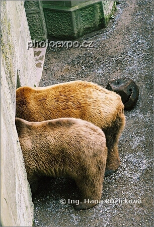 Víte co my na vás svorně vystrčíme? Hnědí medvědi v Bärengrabenu, medvědím příkopu na východním cípu bernského Starého města. Švýcarsko.