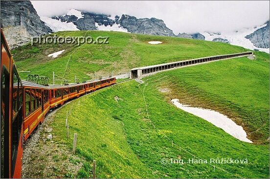 Zubačka, kterou se vezu z fascinujícího Jungfraujoch, kde jsem z observatoře Sphinx (3 571 m n.m.) a přilehlého Plateau obdivovala vzdálený Aletschský ledovec, přilehlý štít Jungfrau (4 158 m n.m.) a široké okolí pokryté sněhem a ledem, zpět na Kleine Scheidegg (2 061 m n.m.), sedlo umístěné pod slavnou severní stěnou Eigeru (3 970 m n.m.). Tato zubačka je tou nejdražší ozubnicovou dopravou ve Švýcarsku a stanice Jungfraujoch, v masivu pod meteorologickou stanicí Sphinx, je zároveň nejvýše položenou železniční stanicí ve Švýcarsku (3 454 m n.m.). Švýcarsko