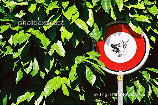 Zákaz vstupu psům. Úsměvná značka v parku u katedrály Notre-Dame v Lausanne. Vaud, Švýcarsko.