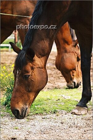 Koně ve Svatém Mořici, pravděpodobně účastníci zimních dostihů na zamrzlém jezeře tzv. White Turf. Graubünden, Švýcarsko.