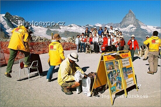 Japonské davové fotošílenství "MY A MATTERHORN", "JÁ A MATTERHORN" na plošině Gornergratu (3 089 m n.m.) zde dalo vzniknout profesionální fotografické nabídce. Vskutku dobrý job! Wallis, Švýcarsko.