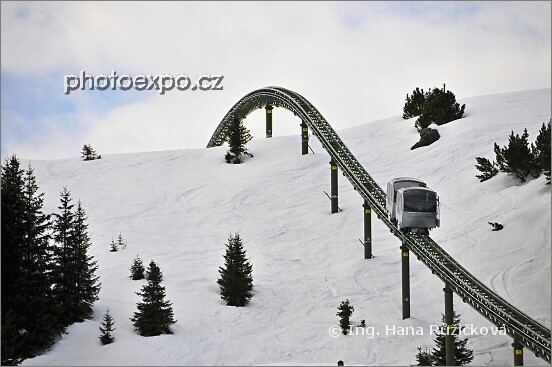 Komfortní lanovka Tschuggen Express patřící Tschuggen Grand Hotelu Arosa****** zdarma vozí ubytované návštěvníky od hotelu do zimního areálu Weisshornu - snowparku Arosa a zpět. Jasně, že jsme si ji užili :=) Graubünden, Švýcarsko.