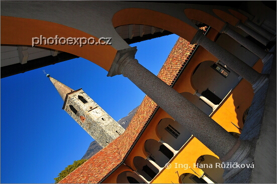 Collegio Papio - vysoká škola, renesanční stavba s arkádovým nádvořím a kostelem Chiesa Santa Maria della Misericordia v městečku Ascona. Ticino, Švýcarsko.
