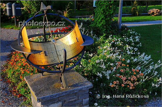 Sluneční hodiny v parku ve Vitznau. Luzern, Švýcarsko.