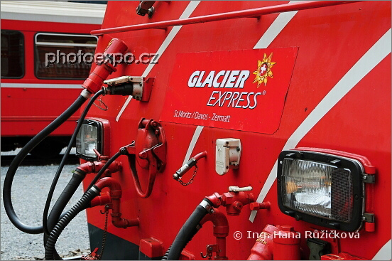 Detail lokomotivy světoznámého Ledovcového expresu (Glacier Express), kterým jsme jeli z Brigu do Churu. Švýcarsko