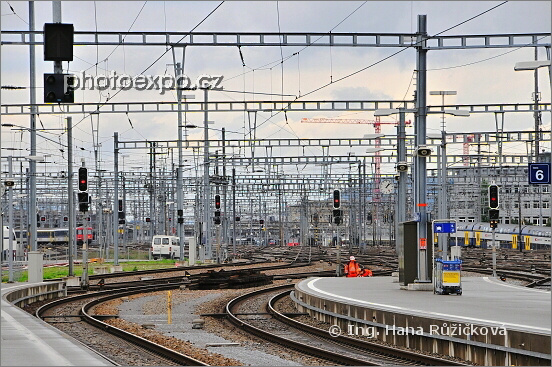 Nepřehledná změť sloupů a kolejí aneb vlakové nádraží v Zürichu. Švýcarsko