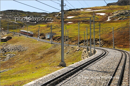 V červenci 2009 jsem měla možnost jet na čelní plošině Premiere Glacier Expressu z r. 1930 ze Zermattu na Gornergrat. Můj fotoaparát samozřejmě jel na plný výkon a dokumentoval jak koleje známé zubačky, tak i okolní vysokohorskou nádheru. Wallis, Švýcarsko.