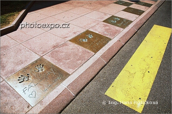 Před vstupem do muzea Fondation Pierre Gianadda v městečku Martigny vítá návštěvníky chodník s obtisky rukou pravděpodobně známých osobností. Valais, Švýcarsko.