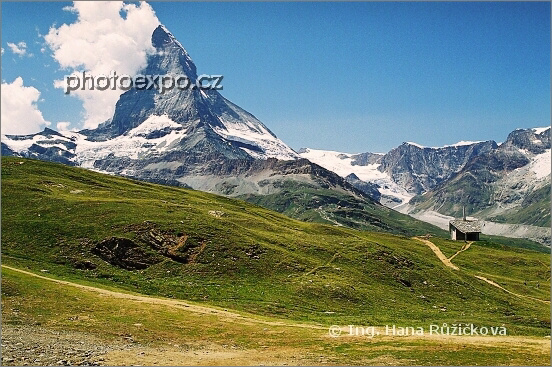 Cestou z Gornegratu do Zermattu se otevírají úchvatné výhledy na Matterhorn. Pohled, kdy se obrovský Matterhorn postavil do protikladu malinké kapličce, mne zaujal a následně se stal titulním snímkem na obálce mé publikace ŠVÝCARSKO - CESTOPIS VE FOTOGRAFII. Wallis, Švýcarsko.