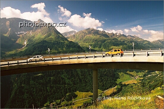 Cestování po Alpách se neobejde bez mostů a tunelů. Tato nová silnice spojující Airolo a průsmyk sv. Gottharda nahradila původní starou cestu postavenou převážně ze žulových kostek. Ticino, Švýcarsko.
