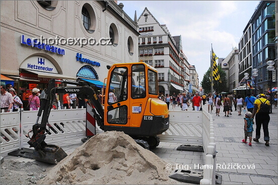 Stavební práce uprostřed rušné Neuhauserstrasse v Mnichově. Německo